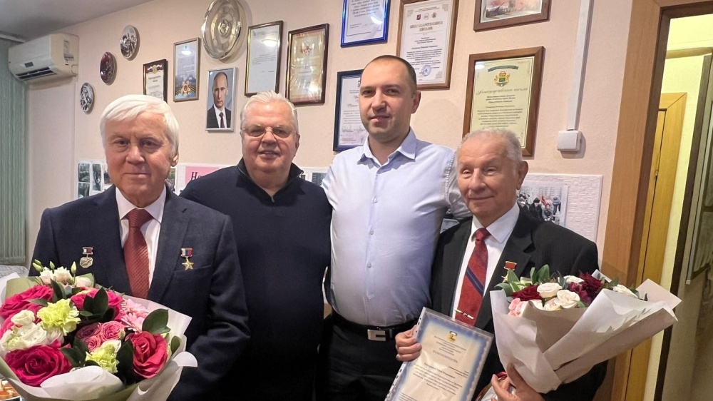 Поздравление Героев 09.12.2025 9 декабря в Совете ветеранов глава муниципального округа Печатники в городе Москве Алексей Алексеевич Урюпин совместно с главой управы района Печатники Михаилом Сергеевичем Шитиковым и председателем Совета ветеранов района Печатники Татьяной Георгиевной Пугач поздравили Героя России Владимира Михайловича Каганова и Героя Социалистического Труда Юрия Николаевича Чумаченко с Днём Героев Отечества. Владимиру Михайловичу и Юрию Николаевичу были вручены ценные подарки и благодарности. В домашней тёплой обстановке пили чай и вели задушевные разговоры. «Жизнь этих людей – достойный ориентир для воспитания подрастающего поколения в духе патриотизма и преданности Отчизне. Своим трудом, делом, ратным подвигом они показали пример самоотверженного служения Родине и своему народу. Спасибо вам за подвиг!», - глава муниципального округа Печатники в городе Москве А.А. Урюпин